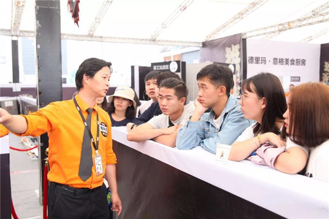 在本次大赛现场,还到场了部分建筑、室内设计等专业的高校学生,通过学校老师的介绍了解到了这场家装工艺大赛的举办,并现场观摩真正的家装工程,亲身体验到每一种工艺的精致,而鲁班装饰的工程总监谢忠明也耐心地为现场的学生们讲解水电工的具体操作。
